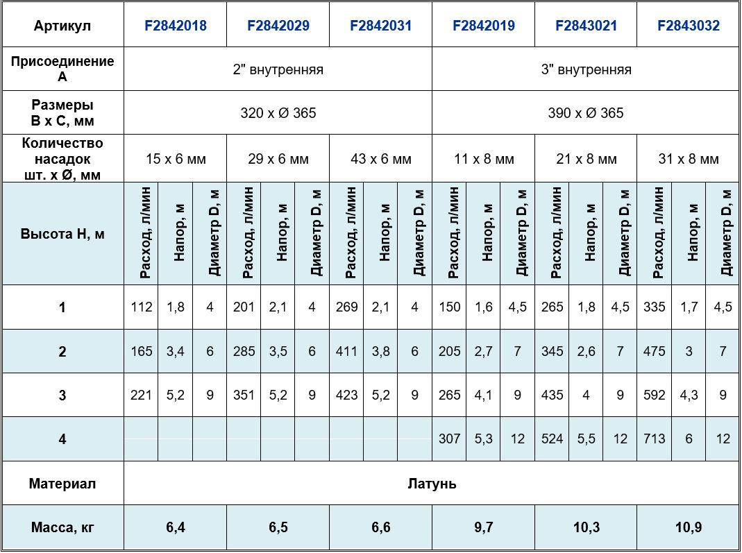 Высота струи max, м