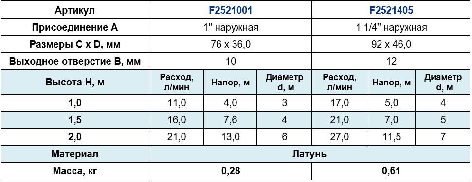 Высота струи max, м